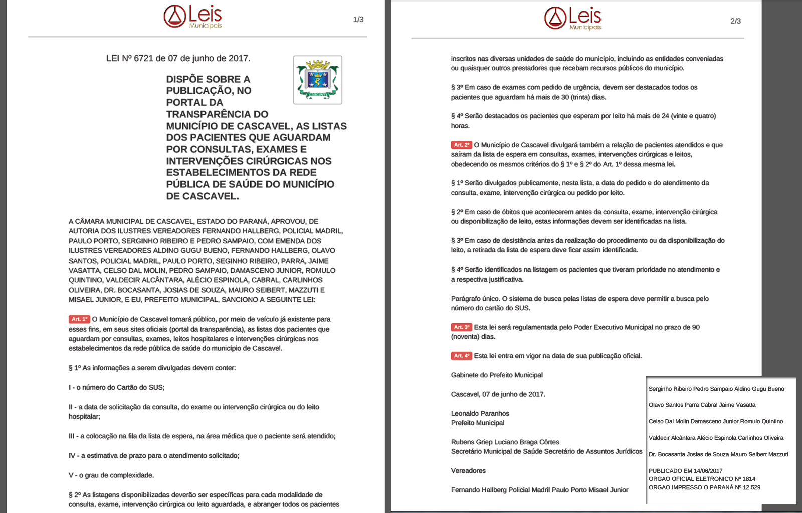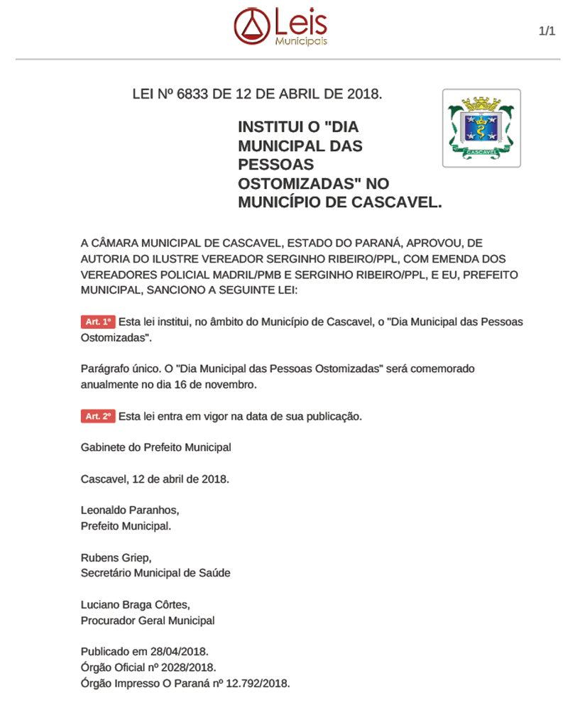 .Foi aprovado em votação unânime na Câmara Municipal o Projeto de Lei nº 43 de 2019 de minha autoria, que institui no Calendário Oficial de Eventos do Município de Cascavel, o evento "Mais Saúde, todos juntos contra a obesidade". (Autor: Vereador Serginho Ribeiro/PDT).