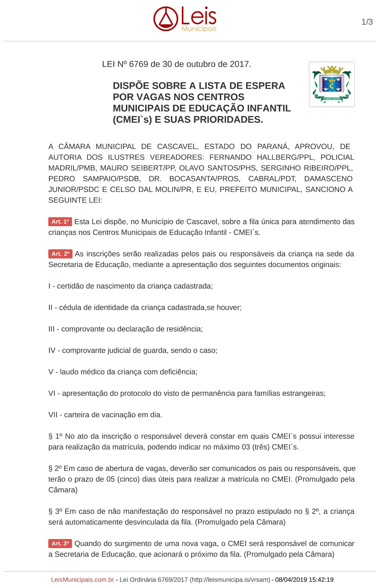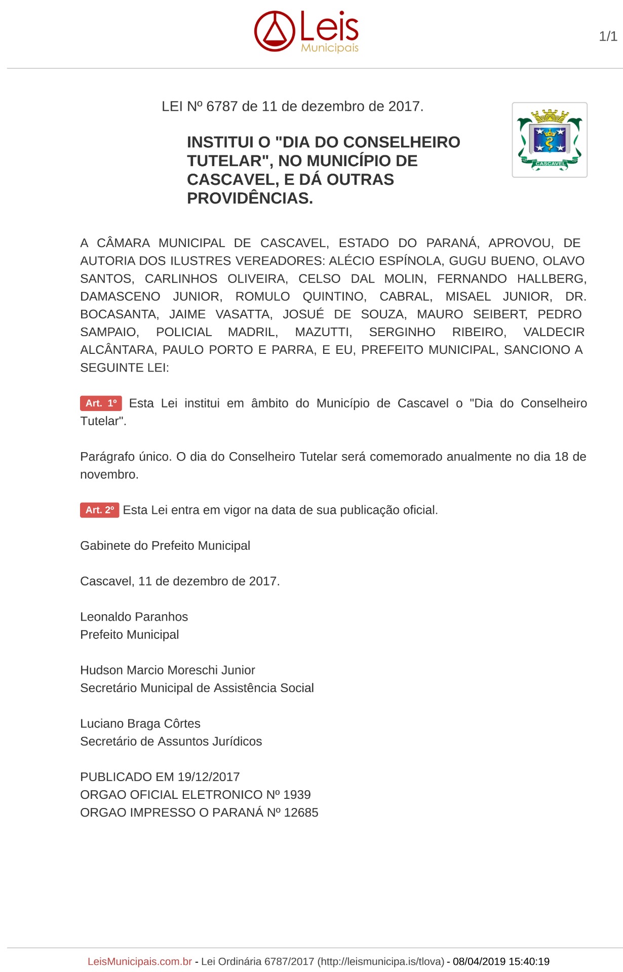 LEI Nº 6833 DE 12 DE ABRIL DE 2018